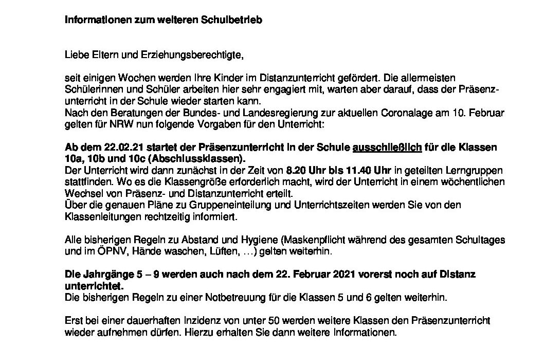Elternbrief Schulbetrieb ab dem 22.02.21