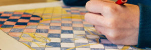 malende Hand im Vordergrund