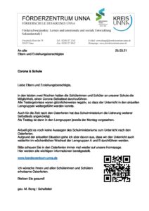 Elterninfo Unterricht ab 12.04.21