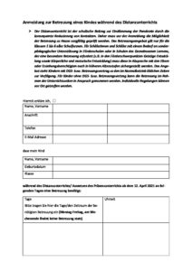 Anmeldung Betreuung ab dem 12.04.2021